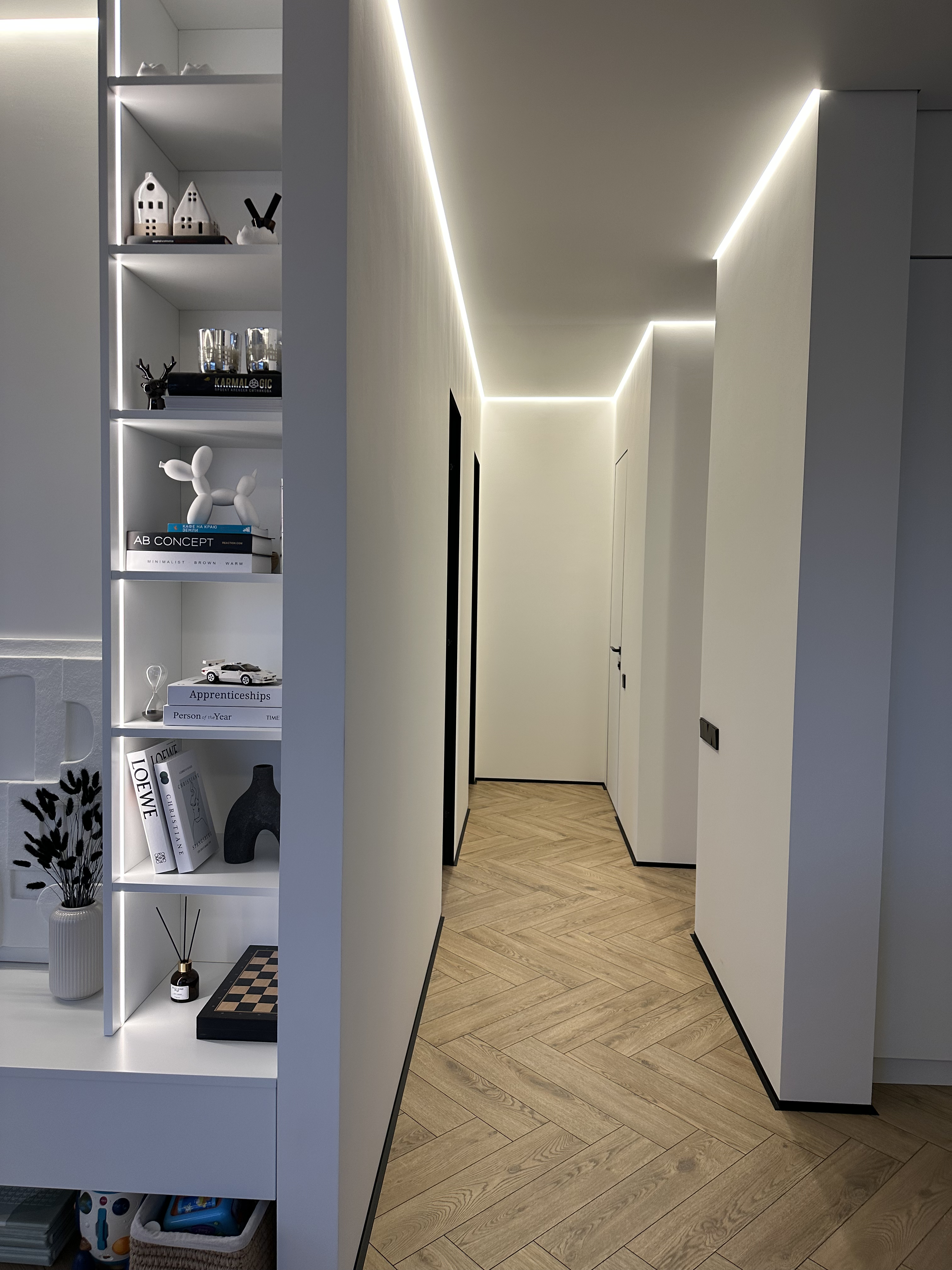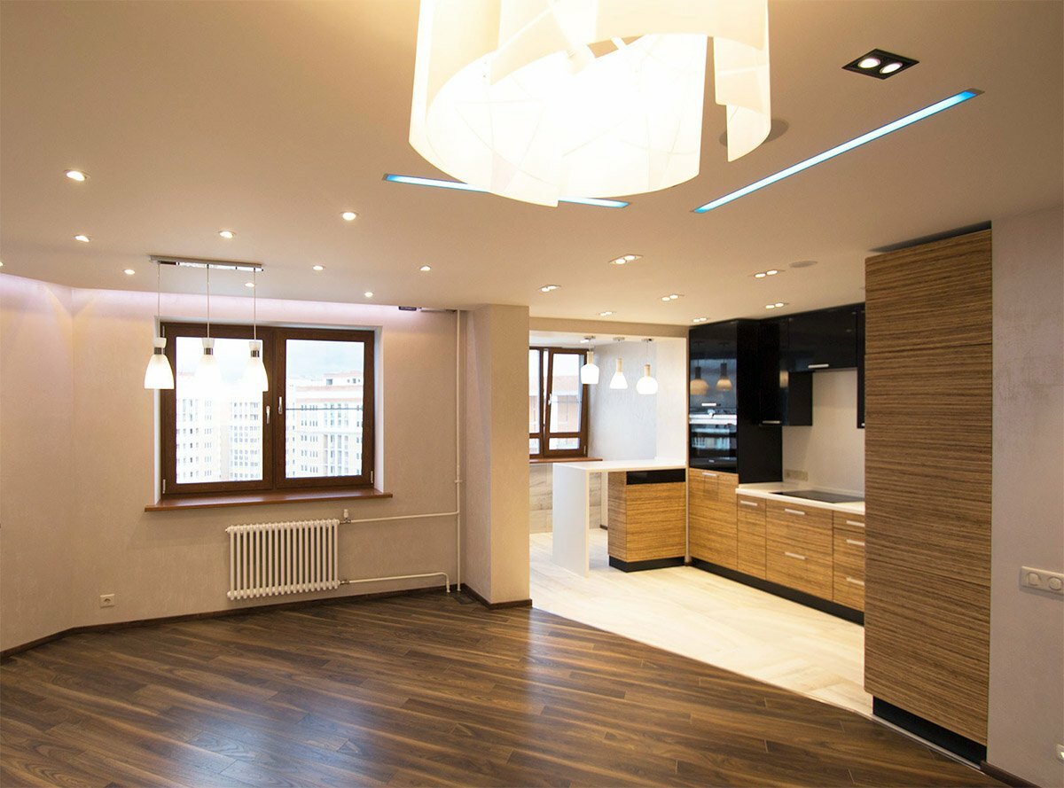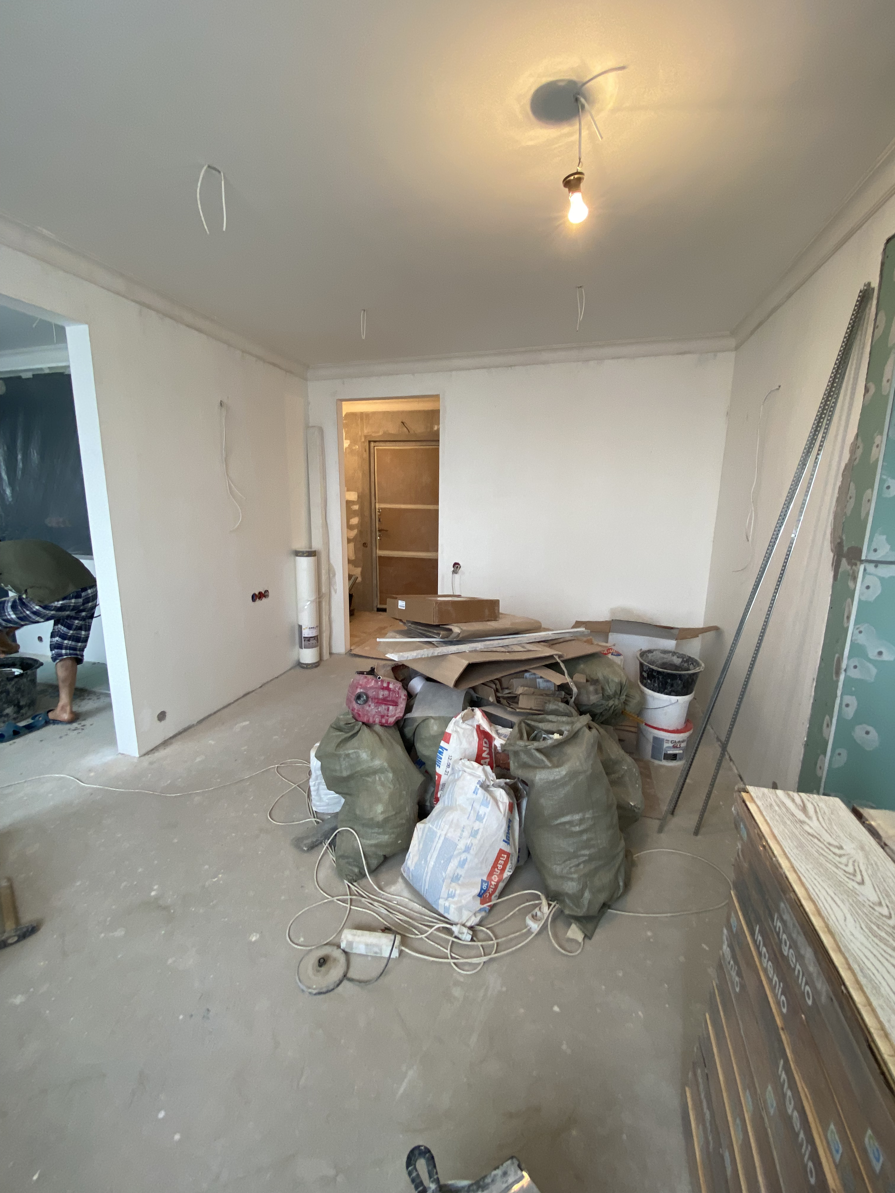 - Планировка и черновая отделка: Возведение перегородок, устройство стяжки пола, устройство потолка из гипсокартона, штукатурка стен.